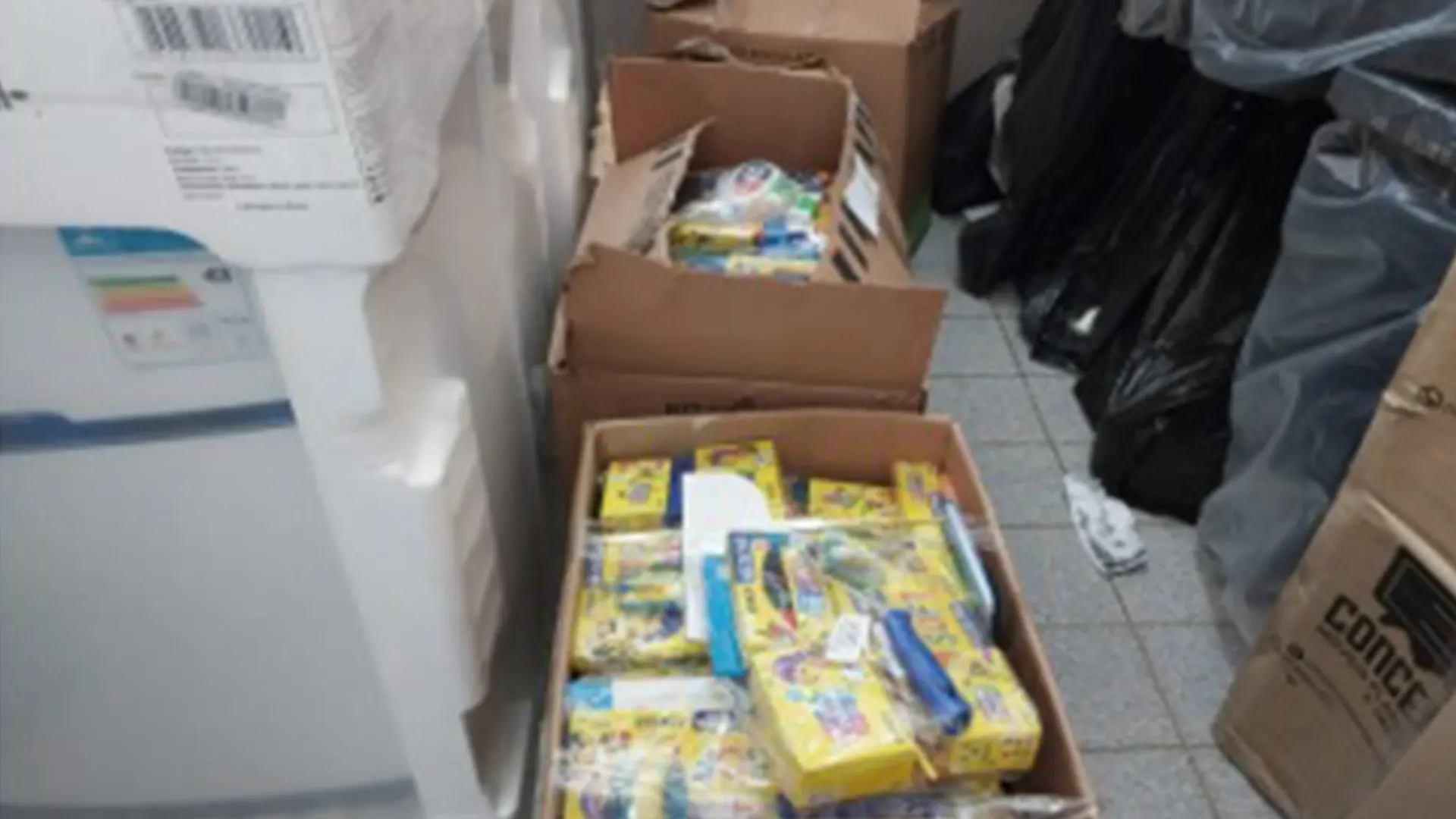 Também foram encontrados kits de materiais escolares que a Secretaria de Educação disse ser remanescente do ano passado, que são encaminhados às unidades escolares conforme a necessidade dos cerca alunos, especialmente para suprir eventuais faltas ou novos alunos que se matriculam no decorrer do ano.